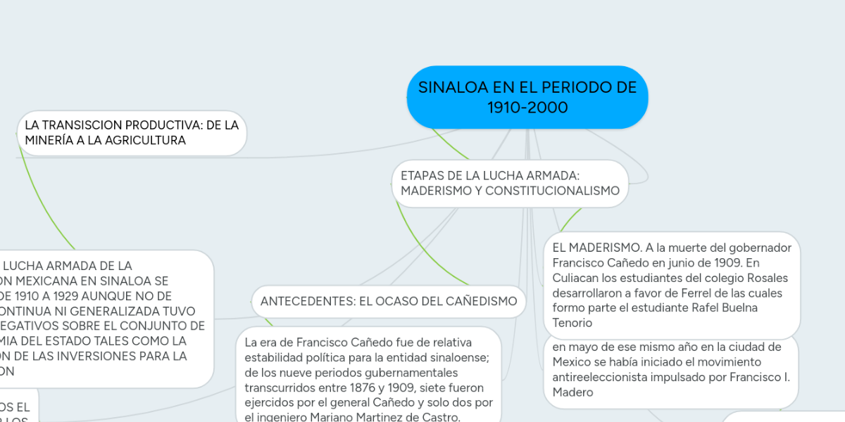 Sinaloa En El Periodo De 1910 2000 Mindmeister Mapa Mental